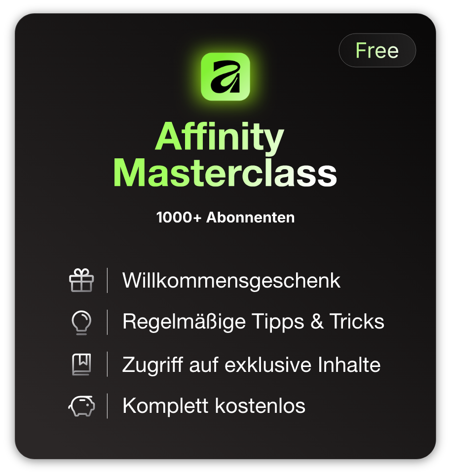 Melde dich jetzt kostenlos für den Affinity Masterclass Newsletter an und sichere dir exklusive Tipps, Tutorials und Insights rund um Affinity.